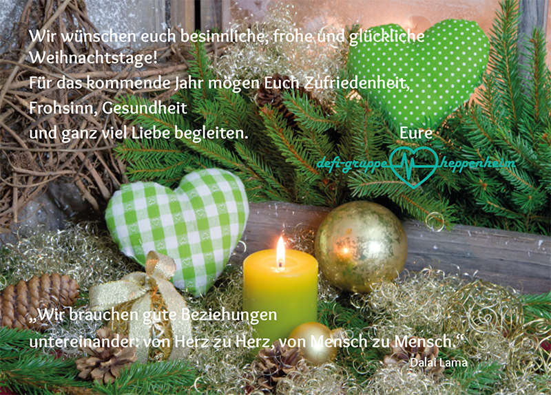 Wir sind eine Gruppe Menschen, die eines gemeinsam haben: Einen implantierten Defibrillator. Ziel unserer Treffen ist ein reger Erfahrungsaustausch zwischen den Menschen, die mit einem Defibrillator leben, als auch den Angehörigen. Wir planen auch gemeinsame Freizeitaktivitäten. Jeder ist herzlich eingeladen, uns kennenzulernen.
